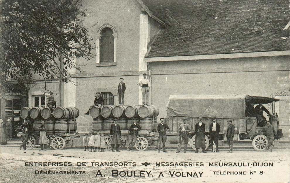 This postcard is an advertising for the transport company "A. Bouley", based in Volnay, Burgundy. The telephone number is quite easy to remember : # 8