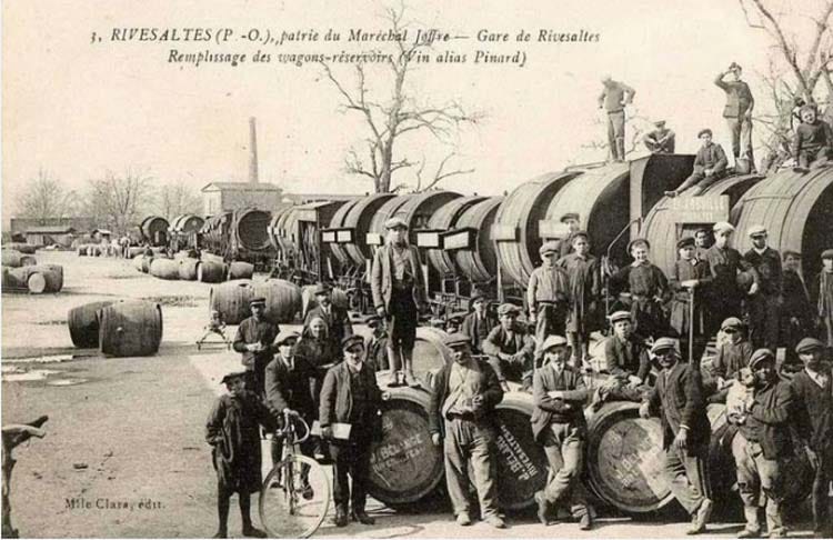 You can see on this silent video the filling of the Army’s wine-tank trains in Béziers (Languedoc). You can see hand pumps and engine-powered pumps, and also a major railway station with hundreds of wine-tank cars waiting for their turn to hit the railroad toward the battle front. At the end of this video, you can see harvest scenes in the vineyard, plus another one when the grapes are delivered to the winery.