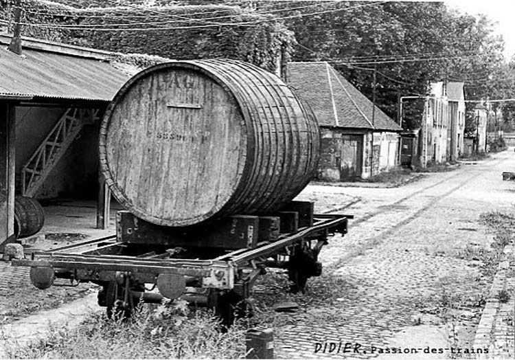 This type of tank car was seemingly still widely used then in the 1930s' to transport wine from the producing region to the French capital. It is basically a huge foudre (a large-capacity barrel) mounted on a railroad-car chassis.