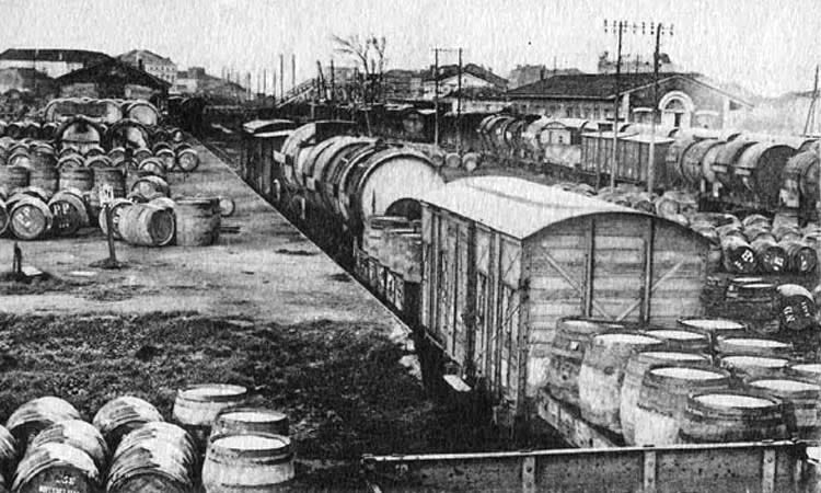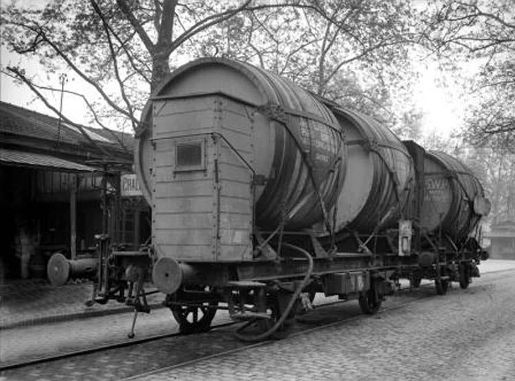 The tank car on railroads replaced progressively at that time the barge on canals and rivers, the water system having been for ages the priviledged pipeline for the transportation of goods. The barge offered the advantage of a smooth trip but it was long and the wine spent more time under changing temperatures, so it's hard to tell which was better for the wine. The best wines were transported in smaller barrels (not foudres) but same for the wine from local, small-size wineries which relied on self-sufficient means to deliver their production.