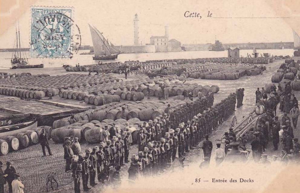 until the end of the 19th century the Languedoc shipped its wines and spirits through this port. Then in the first half of the 20th century Sète was the entry port for the huge volumes of Algerian wine. Somewhere in the 20th century huge tanks were built near the port of Sète to pump bulk wine directly from wine tankers commuting between Algeria and France, thus dwarfing the use of barrels.