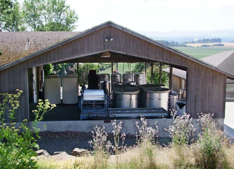 Brian purchased the property in 1992, it's a beautiful piece of land along the slopes of gentle hills 2 miles from the village of Carlton in the Willamette valley. Only part of the property has been planted with grapes, the rest being prairies for the farm animals and woods.