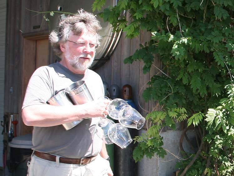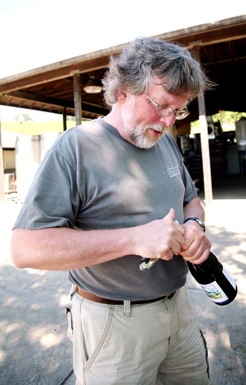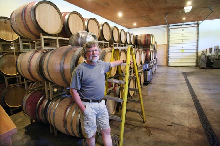Asked about his recent plantings, Brian O’Donnell says that he planted a few rows of gamay to complete a first trial with the variety, so that he can make some 4 barrels of wine or 100 cases. He vinifies the gamay half whole-clustered and half destemmed, half crushed, so that’s not a true carbonic maceration, he says.