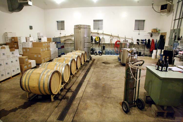 Brian O’Donnell took advantage of the slope to have a natural gravity stretched over three levels, which allows a minimum use of pumps. The open chai is also beautifully designed, allowing a natural ventilation during the harvest and early vinification as well as providing a protection against rain and sun. Typically, Brian says, they do the macerations outside under this open roof, but they do a lot of vinification insdoors as well.