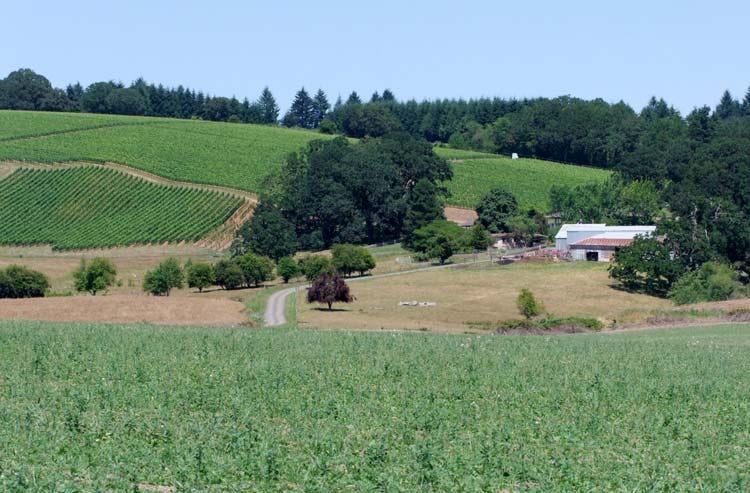 Belle Pente means "nice slope" in French, and the property is indeed a nice slope in a nice setting, a beautiful place to start a farm. Brian's first plantings were a mix : pinot noir, pinot gris, chardonnay, gamay, a bit of pinot blanc. The whole surface of this one-block property is 70 acres and the vineyards make 18 acres.