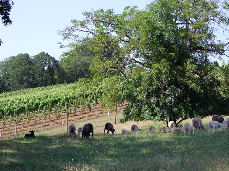 This was another hot day of summer in Northern Oregon, and every living being including us looked for shade. The sheep were no exception and happily there were these big trees to hide under. The wine farm, like any biodynamic farm, has lots of animals, sheep, goats, cows, chicken, and more recently, bees with a few hives. The sheep go through the vineyard in winter to eat the grass and leave compost, and so the chicken, at least in certain parcels needing nitrogen.