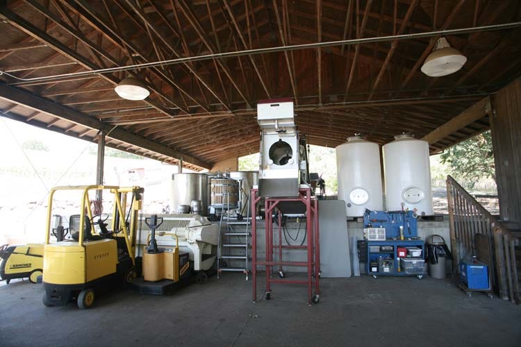 They use the same German-made press (picture above) that the one I saw at Eyrie, plus another small vertical press (background on picture right) which they use for the small batches. They use a manual-sorting table when necessary