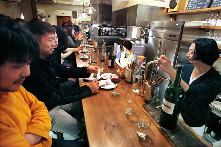 From what I could learn while walking in the Tokyo and stumbling on bars/restaurants on the street level, many places that have the sign “wine bar” have an uninteresting wine list seemingly picked from distributors specialized in commercial wine, lots of New World wine and from what I could judge from the French labels, not worth paying what they asked, except for the pride of showing you were having this or that AOC.