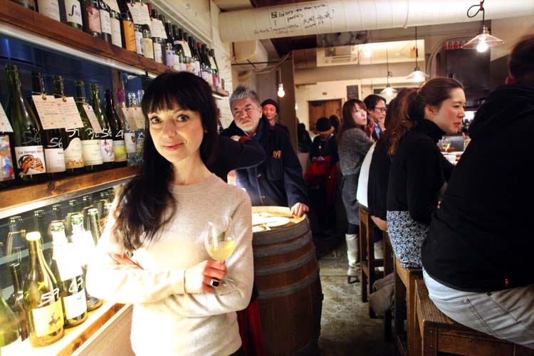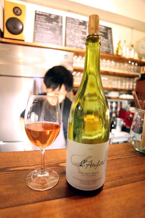 I was tipped about this wine bar by Rebekah (seen on the picture above walking into the venue) who in addition to be a fine-sake specialist knows much about the wine scene in this big city. She had presented me to the founder of the place, Teruhiko Saito (picture above, on right), who was also visiting Festivin (the Tokyo natural-wine fair) a few days earlier.
