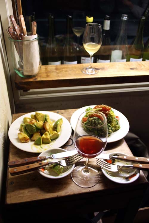 Rebekah ordered a few plates which allowed me to see and taste the exciting food at Ahiru Store, very colorful, healthy and salivating, you can see a few pictures on this nice post about the wine bar. We had met at 9:30 pm for this adventure and I had already eaten elsewhere (with sake...) but still could eat this good and generous food. Actually we were lucky enough to be able to get in, because the wine spot is now well known by wine lovers and it is not uncommon to have to wait in line outside. I think that Rebekah had anticipated that we'd get more chance at this later hour, than say 7pm.