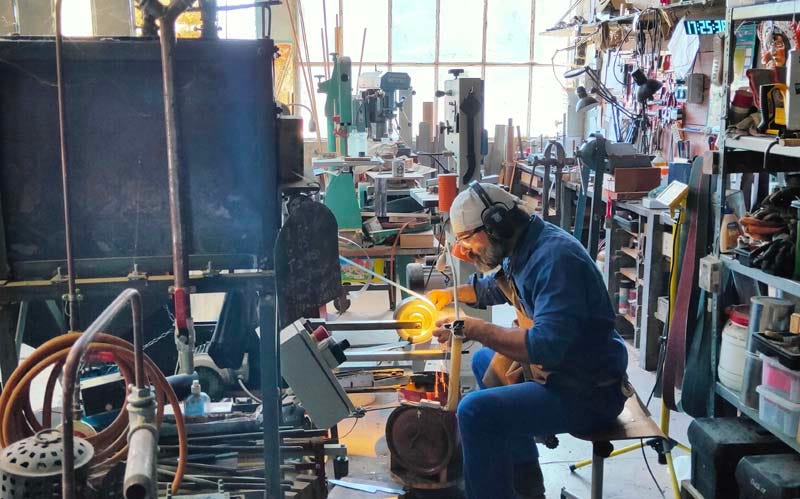 Samuel Leucart showing his knives