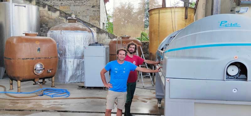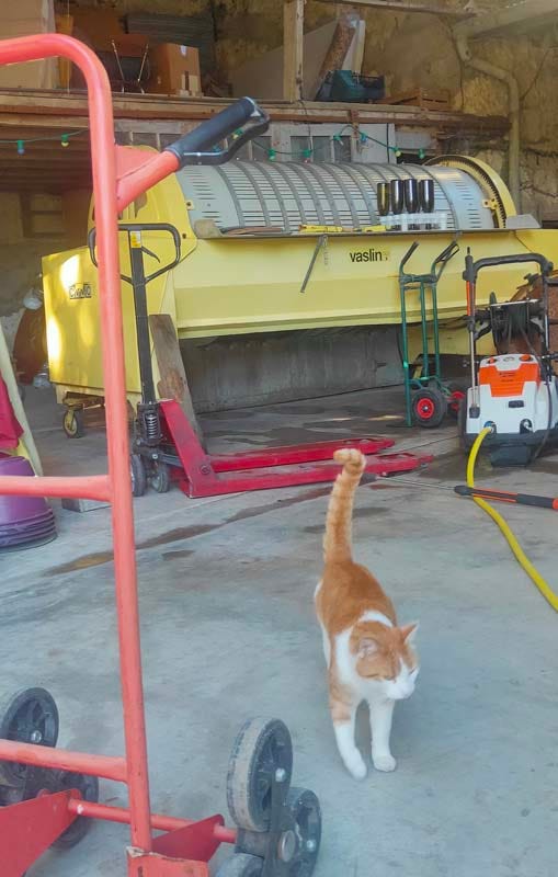The press on the right is full of Chenin, the total press time will be 2 hours. They picked this Chenin the same morning from 7:30 am to noon, avoiding to pick anything in the afternoon because this mid september was still hot. they still had Menu Pineau and Côt scheduled for the following week. Mikaël says this year was indeed nice from start to now, beautiful weather all along. During the lockdown in march-april they had more work than usual because the vines grew like crazy in april and they had to rush for the pruning or debudding. Still, he says, it was so better to live here than stay stuck indoors in the cities like so many people.
