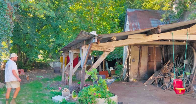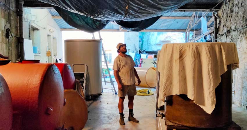 Sylvain keeps working on the renovation of the wine farm, like here in the chai he got a new cement slab poured, complete with water drains for hygiene and better work conditions. He also renovates his living quarters (his family lives there in the house part).