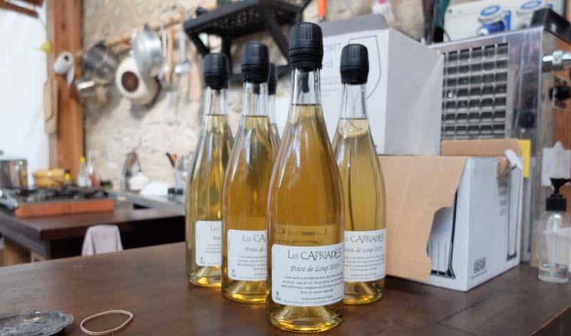 Pascal then gives me a glass of Carisi (or Carési) pear juice, carisi being THE top-quality pear variety for Poiré, a late-ripening type of pear. As you may know (thank you Emily for this piece !) Poiré is making a comeback and Les Capriades play a good part for people to rediscover this ancient sparkling beverage. This year they’ll make 3 or 3 cuvées of it, with volumes of 1500-2000 bottles each. Tastes so good, it’s still pure juice but will ferment like a wine. the pears are sourced from the Perche area in the northern tip of the Loire, near Saint Avril (where there’s a nice natural-wine event every year).
