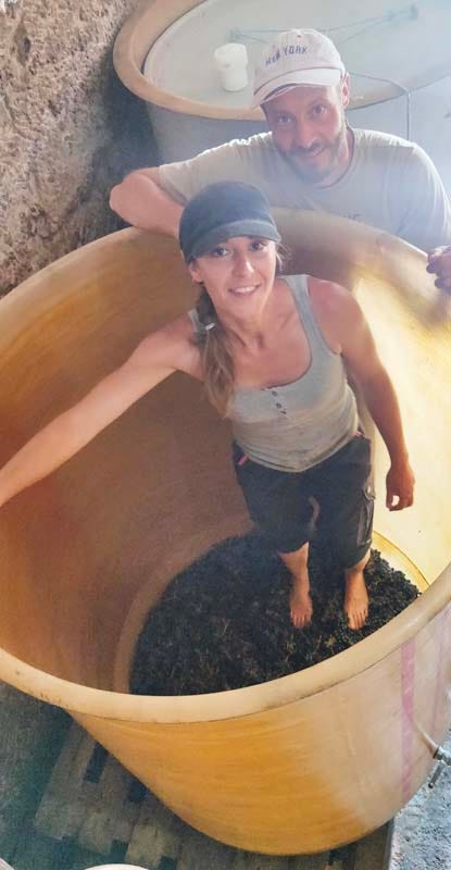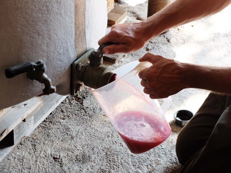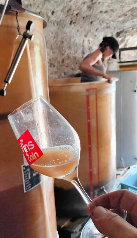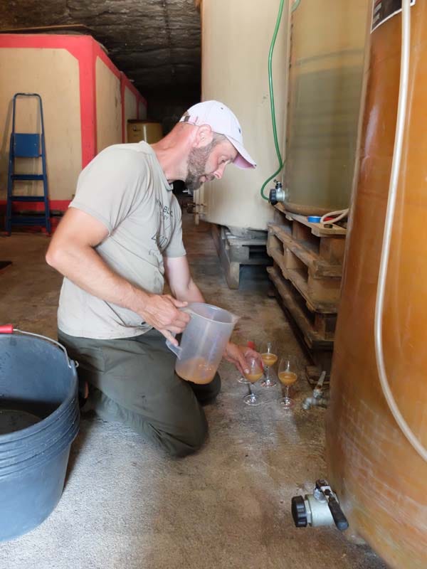 I was to witness a foot stomping by Estelle near the door of the cool cellar in the bottom of a tank, with the aim to make a vibrant pied de cuve with indigenous yeast. This was yet a very nice, pretty warm september day.