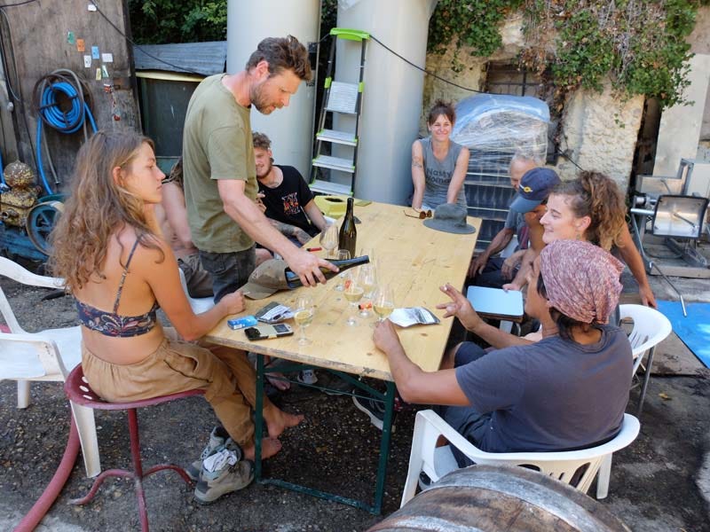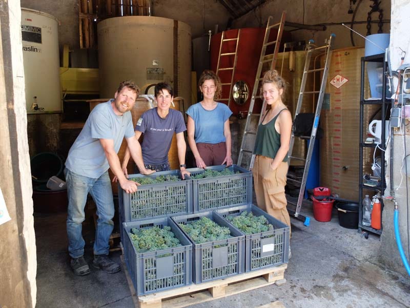 It was rest time that day at Laurent Saillard, here posing with son, friends and pickers, you might recognize Arnaud Erhart who came back here from Puerto Rico in july. Laurent said that this year the yields are nice, the acidity is rather low though with the heat, even malic acidity was degraded by the sun. They began to pick august 22 and at the time (september 7) he had only some Aunis and Cabernet to pick. Good vintage for 2020 in his feel, with just a bit of oidium on Chardonnay and Gamay. Never had such good yields on his Sauvignon. Gamay will be nice even though he lost some grapes from grillure and oidium. Juices taste good.