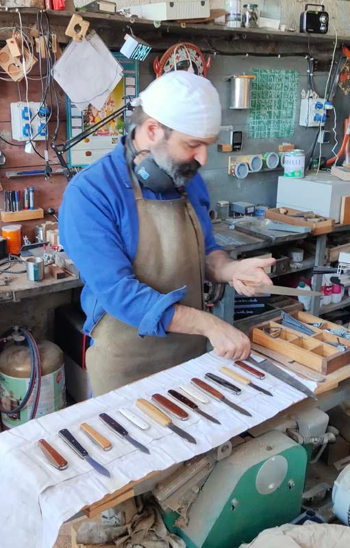 I’ll not try to transale but Samuel uses rare woods or zebu or buffalo horn for the handles, finetuning, polishing them for a perfect finish (that’s where the oven is useful at some point). Listening to him I learnt more about the many different types of blades, some bearing a region name. Oddly Samuel learnt the trade in 2019 after a former life in IT. If you’re interested in his work, his email is samuel@leucart.fr. His website : La Coutellerie du Taureau