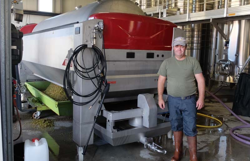 Tasting the bernache of Chardonnay-Sauvignon. This juice had been pressed 8 days before (on september 2) but still tasted the typical bernache with still sugar coating beautifully the nascing alcohol... François says it’ll keep some CO2 with a perly feel. He says that usually they pick grapes with potential of 13-13,5 % but this year, in spite of a longer summer they get lower alcohol, with maturity at pain of raising the alcohol level, he credits the heat for stalling the process.