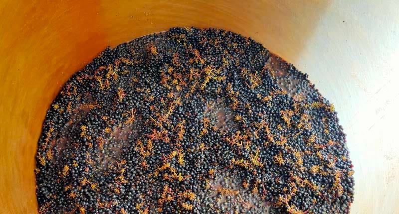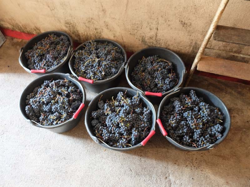 Speaking of the boxes of Sauvignon they just took in, Paul tells me that’s for an infusion : they picked half of the parcel 2 days ago, pressed the grapes, making around 12 hectoliters of grapes, and today they’re destemming today’s grapes and pour the 12 hectoliters over the whole berries in a fibergless vat for a few days. It’s the first time they’ll be doing such an infusion.