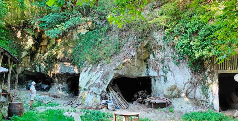 I remembered this scenery from my last visit but since then Sylvain evacuated the tons of rubble that blocked the entrances of these deep cellars and this place really becomes impressively gorgeous. Now they can clean up these cellars, store things there. Imagine this place with a kitchen, you can have dream parties, organize events, it’s a unique landscape with trees all around... The woods above the hill are part of the property. In summer even when it’s hot you don’t suffer here because of the shade and the cool breeze coming from the cellar which is year around at 14 C (57,2 F). Next step is bring in water pipes and electricity.