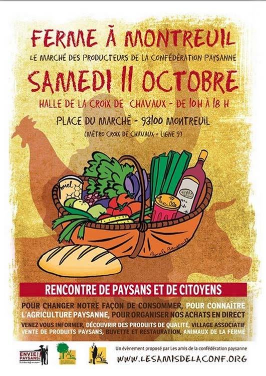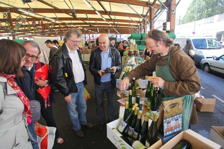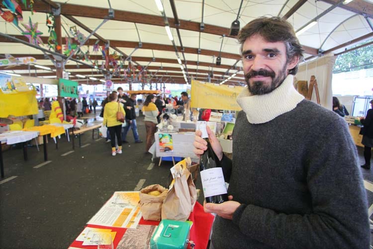 I was supposed to go to the Loire that weekend but for a reason I forgot I had to stay in Paris and I learnt on friday evening that André Durmann, the organic vigneron whom I had visited a year ago in Alsace was selling his wine in an organic farmer’s market the following day in Montreuil, a suburban town next to Paris on the east. That was for me an opportunity to go there see him, buy a few of his bottles and look around to the one-day event where all sort of producers presented their products. The concept of farmer’s market is not that widespread in France, most markets selling produces sourced at wholesellers. Montreuil is kind of a militant town in the organic issue, as it is (or has been__I’m not sure about the last elections as the left lost many of its towns) administered by ecologists and whatever, the town had given the use of the covered square for free for this farmer’s market.