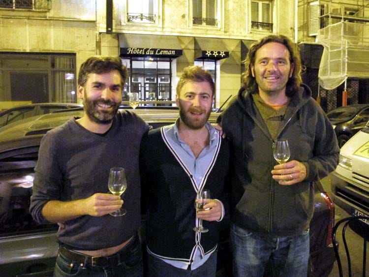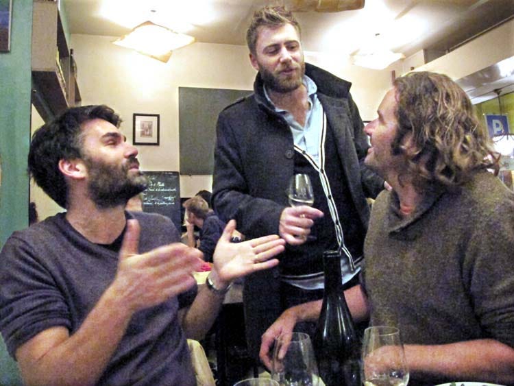 I dined recently with a few wine people at Autour d’Un Verre, Kevin Blackwell’s wine restaurant near the Grands Boulevards in Paris. I had chosen the place to meet one of my sponsors, Raphael Knapp of Return to Terroir (pictured above on left), because the venue is no fuss and relaxed and you’re likely to make exciting discoveries in terms of natual wines. The restaurant opened at 8pm exactly and it slowly filled up to the extent that I was happy to arrive early. Raphael gave me news about how things were going in California for his import business, he was visting France for several weeks to unearth new talents accross several wine regions. This was supposed to be a raisonnable evening (I had to go to work the following day) but Bertrand Jousset joined (he’s one of the vignerons Raphael imports) as he was happening to be in Paris that day, and the whole thing veered off the tracks as bottle after bottle popped up for our party especially that Jousset had come with a few other wine people who sat at a nearby table. I barely took note of all the bottles we had.