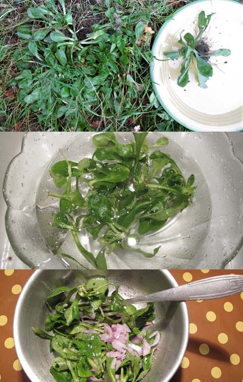 After having witnessed it in different organic vineyards which I visited, like by Jo Landron himself in the Muscadet, I recently picked myself for the first time some wild lamb’s lettuce in the Loire. The wild lettuce has certainly been around for years but somehow I didn’t notice, except one of these last weekends when the similarity of these leaves with lamb’s lettuce struck me. I picked a few of them, keeping a few ones in place so that I can find more in the future (I don’t know how they reproduce, to be frank). Ignoring the danger (this could have been some indigestible plant) I rinsed the salad lengthly to take off the earth and I had my first ever salad of wild lamb’s lettuce. B. wasn’t around that weekend so if I had made a poor choice I’d be the only one to fall. I wasn’t poisoned and it was an interesting eat, you had to chew it quite much (even compared to quality lamb’s lettuce) and the taste was a bit different, herbaceous and almost tannic, which made me wonder if this was really the right vegetable. I’ll ask around, it may just be a question of when to pick it.