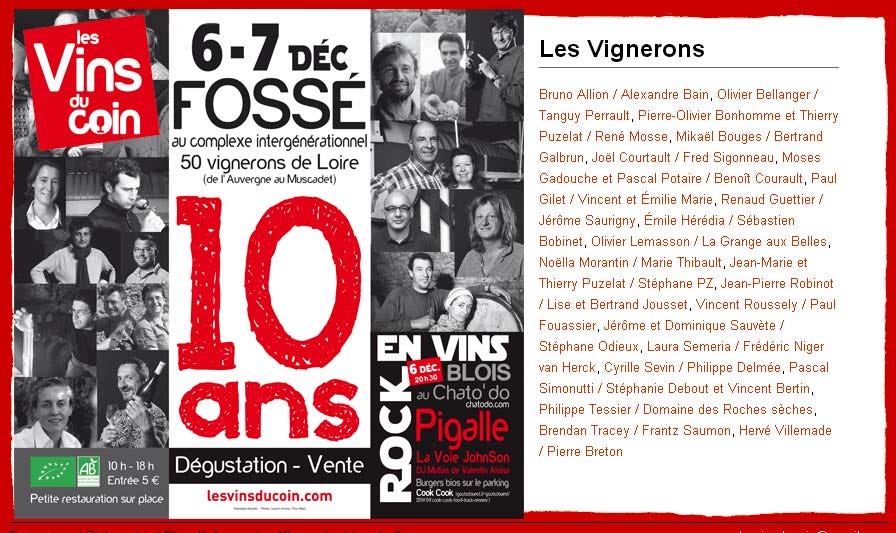 Wine gathering in Blois soonI almost forgot to tell about a great natural-wine tasting event coming soon ! Les Vins Du Coin, it takes place december 6 & 7 near Blois (short trip by train from Paris) and gathers 50 vignerons from the Loire region (which goes from the Muscadet to the Auvergne !) and a plus for this 10th edition, each participating vigneron will bring a fellow winemaker sharing the same philosophy.